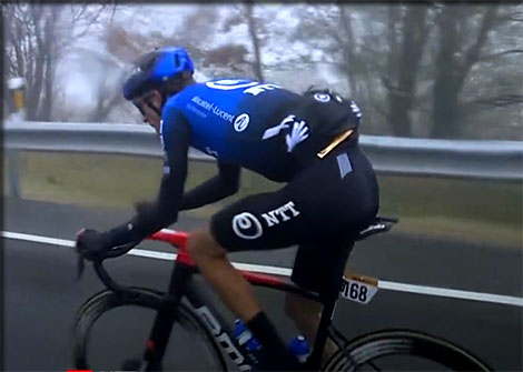 dans le Padornelo CATTANEO fait un vrai numero seul contre le vent il a distancé de 52" ses compagnons d'échappés qui vont être repris par le peloton-