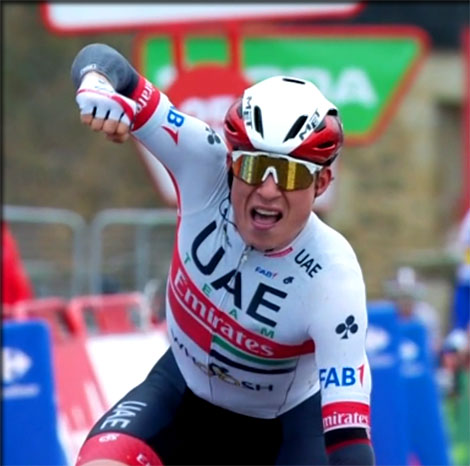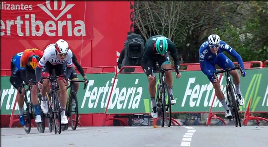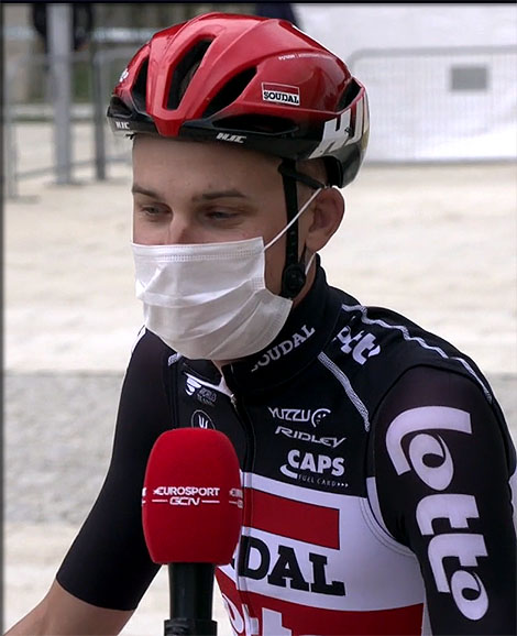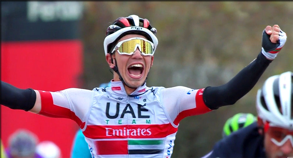 Jasper PHILIPSEN s'impose devant lui dans le dernier raidillon à 5% .