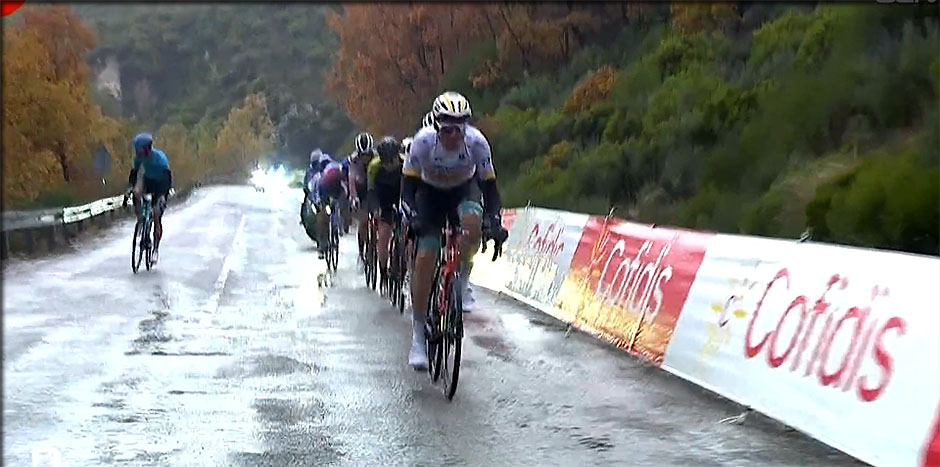 G.Martin s'impose au sommet du San AMARO - ça va continuer de grimper par paliers jusqu'à l'Alto de Carcedo bien moins pentu
