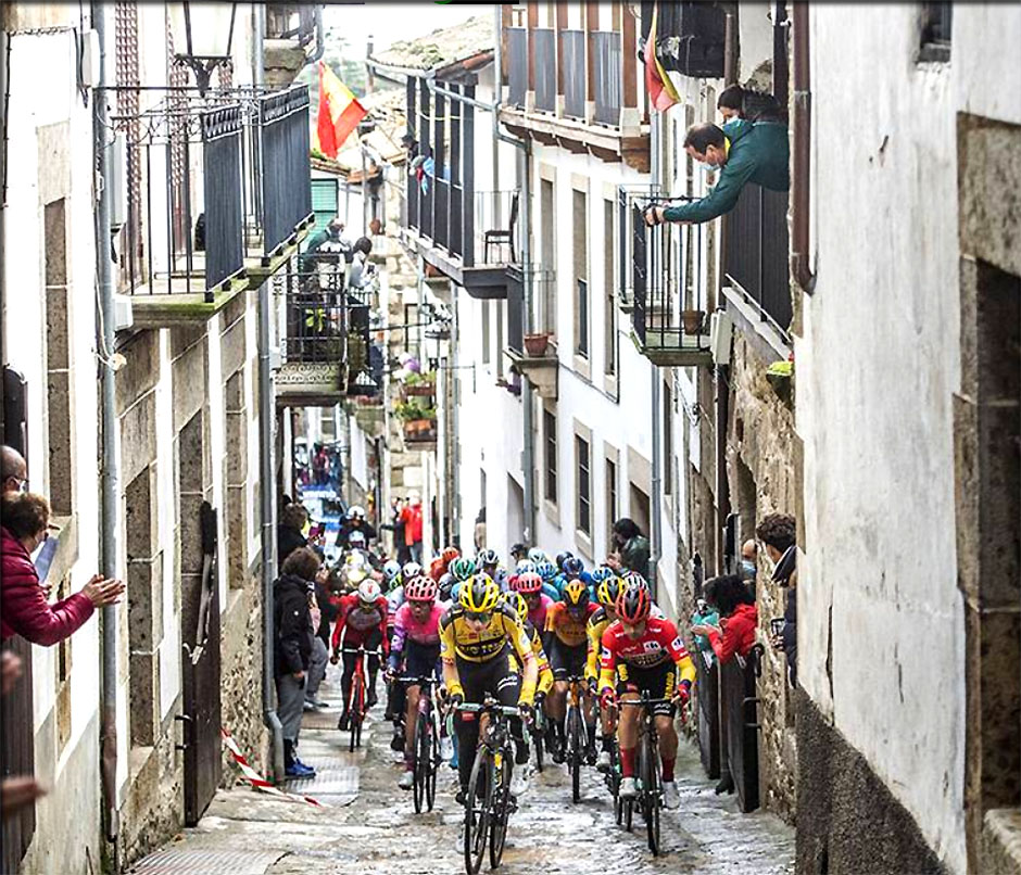 Voici ce qui restait du peloton au passage dans les rues pavées de Candelorio village situé au pied de la Covatilla