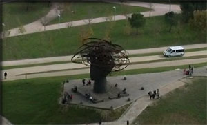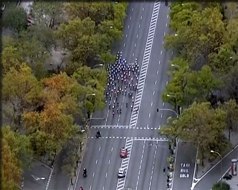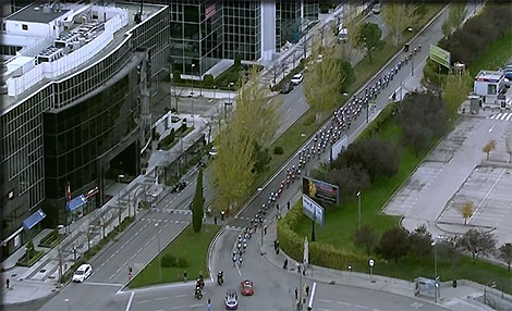 Les coureurs sont entrés dans MADRID par une large avenue- vue aérienne plus loin à Madrid