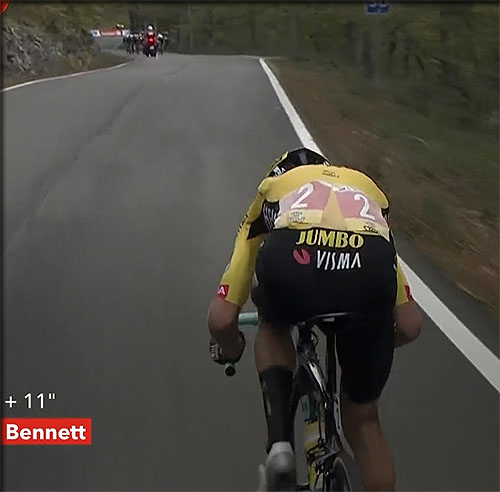 Primoz Roglic (Jumbo-Visma) s'adjuge la 2ème place au sprint, à 19 secondes, et renforce sa position au maillot rouge en prenant 6" de bonification.