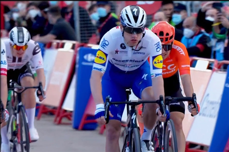 ce qui n'est pas tout à fait le cas de Bennett qui se fait surprendre et doit produire un gros effort pour arriver à remonter Philipsen qui pensait pouvoir l'emporter après avoir fait un long sprint en tête