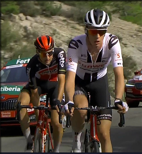 C'est le principal enseignement au terme de cette 5 ème étape et à la veille d'une grosse étape de montagne remplaçant celle qui devait passer en France: arrivée à Aramon Formigal...Tim WELLENS sera revêtu du maillot à pois demain pour la 6 ème étape