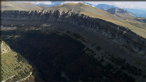 Les lacets de l'alto de Fanlo vues d'hélicoptère