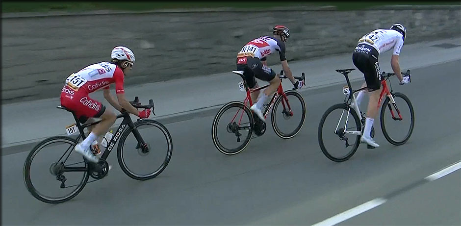 Le leader de Cofidis Guillaume MARTIN tente de rejoindre WELLENS et ARENSMAN en t ête de course.