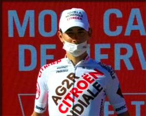 16h 30 - Bardet, Champoussin, Storer, Calmejane , Moniquet, Herrada, Hirt... poursuivent Gibbons qui a une avance de 40'' sur un groupe de poursuivants dont Padun avait été laché mais est revenu.. Le groupe Roglic est pointé à 4'20'' et le groupe Lopez perd 2'20'' - Jack Haig monte sur le podium virtuel