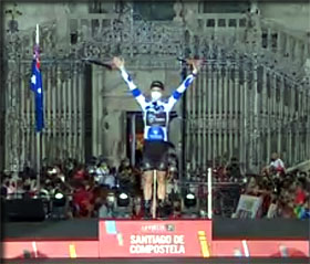 à Saint jacques de Compostelle - Primoz ROGLIC sur le podium du vainqueur