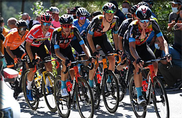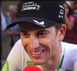M.A.Lopez s'est expliqué hier soir. dans un premier temps il était furieux de la décision de son équipe de lui demander de ne pas rouler sur le groupe Roglic qui était emmené de main de maitre par les Bahrain Victorious ( photo à droite) et notamment Mark Padun dans le final.