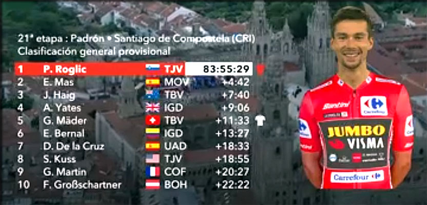 Classement général final de la VUELTA 2021 au terme du chrono final à Saint Jacques de Compostelle
