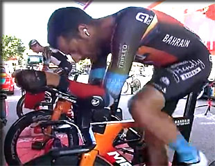 19h 30 - Départ de Guillaume Martin > duel avec De la Cruz qui le talonne de 8" - Champoussin est déjà sur la route - Il reste 5 coureurs prêts à partir