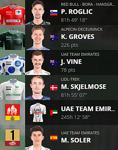 | Pavel BITTNER | Primoz ROGLIC | P.CASTRILLO | Ben O CONNOR | Primoz ROGLIC | Primoz ROGLIC | ||
