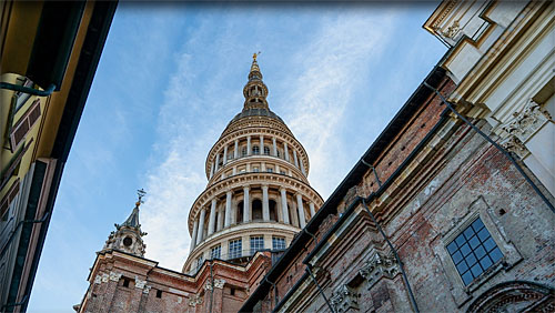 Les coureurs sont en vue de l'Abbatiale San Michele