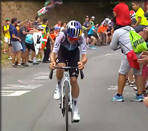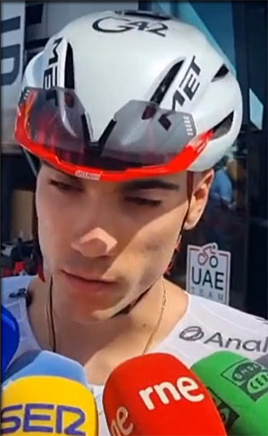 Quant à Ayuso, on ne sait pas quelle va être son attitude... service minimum ?, abandon programmé ? nouvelle victoire d'étape ? ou au contraire aide soutenue à Almeida ?