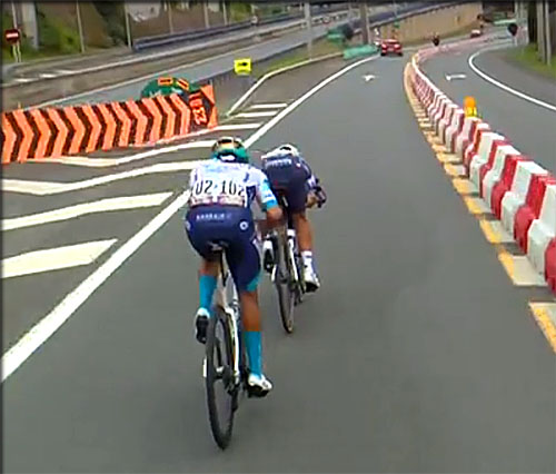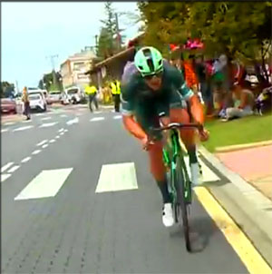 qui ressort du peloton, le sprint intermédiaire étant situé juste après la descnet du Vivero
