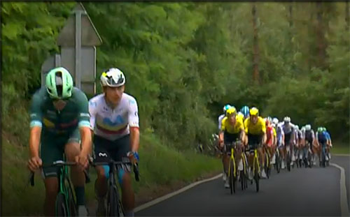13h 57 - à 153 km Le premier repecho, et Pedersen devant