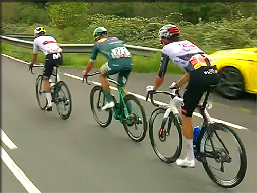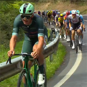 14h 12- à 141 km Ben O' Connor traine à l'arrière du peloton