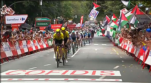 17h 11 - à 16 km Il n'y aura pas de vainqueur d'étape aujourd'hui à cause de manifestants sur la ligne d'arrivée qui créent des incidents, la Guardia civil est là mais la course risque d'être gelée au stade de l'alto de Pique