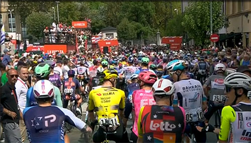 13h 45 - à 154 km les coureurs sont arrêtés par une manifestation pro palestinienne ! L'équipe Israel premier TECH devrait peut être se retirer pour permettre à la course de se tenir.