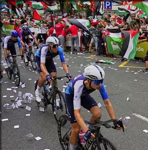 Espérons que l'issue de l'étape d'aujourd'hui ne sera pas perturbée par des manifestations pro palestiniennnes comme celles d'hier, sur le trajet et à l'arrivée.