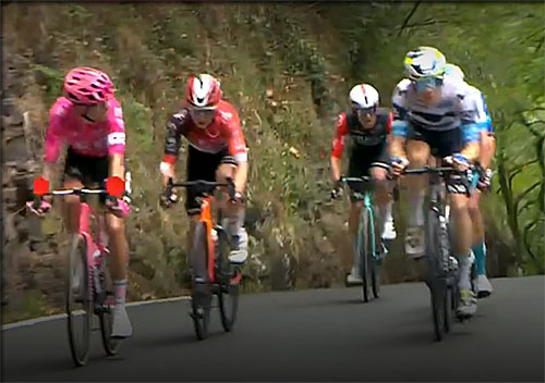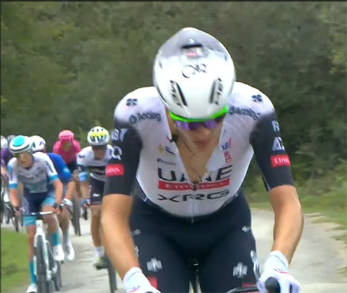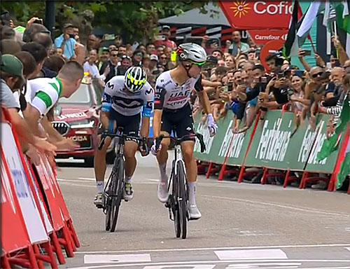 AYUSO et ROMO en tête de course poursuivis par Brieuc Rouland a 13" environ