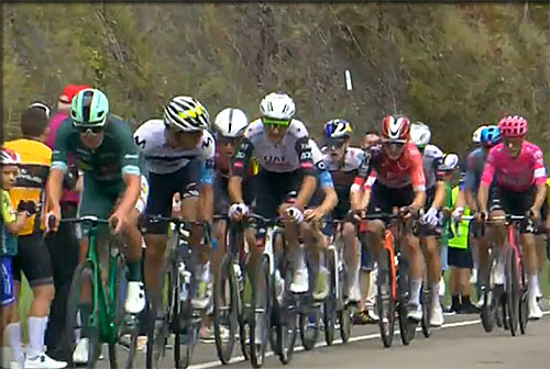 Juan Ayuso et une quinzaine de coureurs font le forcing pour revenir en tête de courses les 22 n'ont que 15" d'avance sur le groupe Ayuso