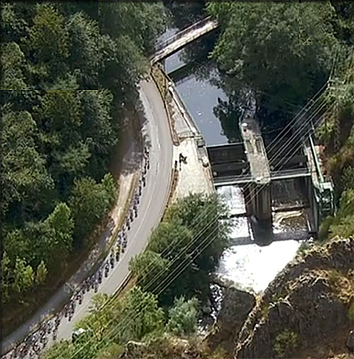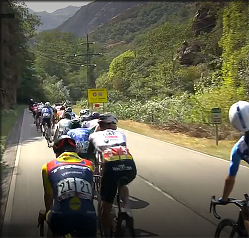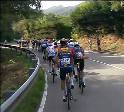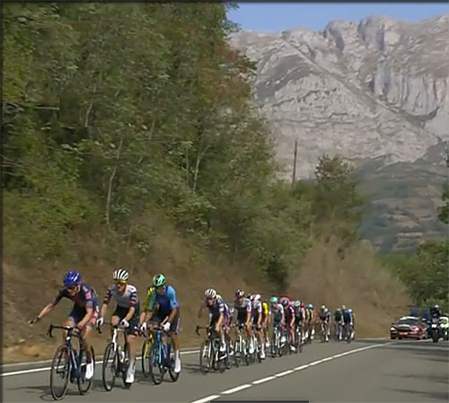 dans la vallée montant en faux plat avant la première empoignade promise par la dureté de l'ascension de l'Alto de San Lorenzo
