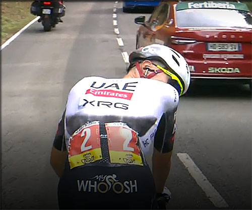 En outre on a vu que les UAE faisait nettement jeu égal avec les Visma en tant que force d'équipe hier notamment avec le coup de force de Grosschartner dans l'Angliru qui a semé la panique dans le peloton des favoris et fait lacher Jorgenson.