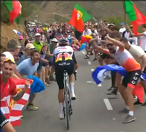 Soler fend la foule des supporters Espagnols venus très nombreux dans la Farrapona