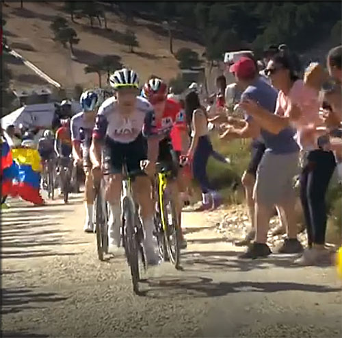 Les 4 poursuivants tentent juste de tenir le coup en restant le plus possible ensemble, Pidcock pour sa 3 ème place, Almeida pour la 2ème,