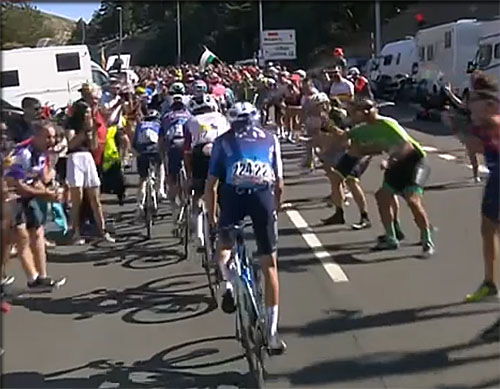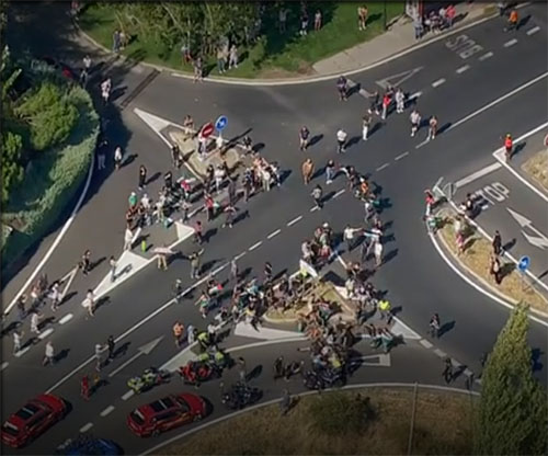 16h 29 - à 18,8 km des manifestants sur la route ont bloqué des coureurs.