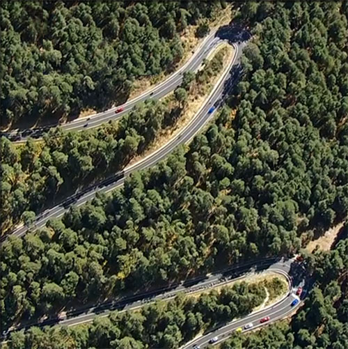 15h 54 - à 51km tous les coureurs sont dans les lacets de la Navacerrda