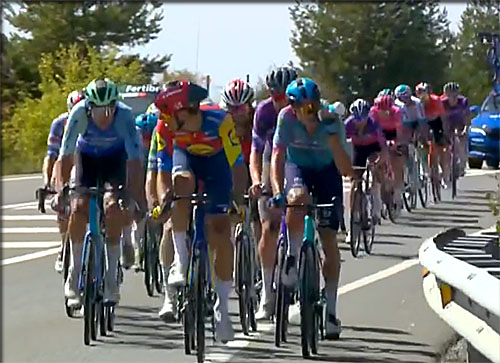 16h 50 - à 7,3 km Ciccone Landa ensemble, mais derrière ça revient sous l'impulsion de Grosschartner pour les UAE qui passe le relai à Jay VINE