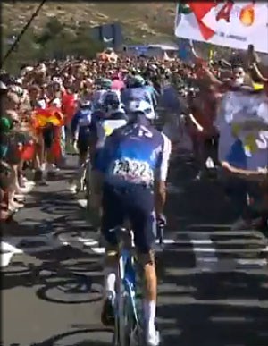 16h 20 - à 23,5 km les 5 coureurs de tête sont encore à l'avant alors que la seconde ascension du puerto de NAVACERRADA