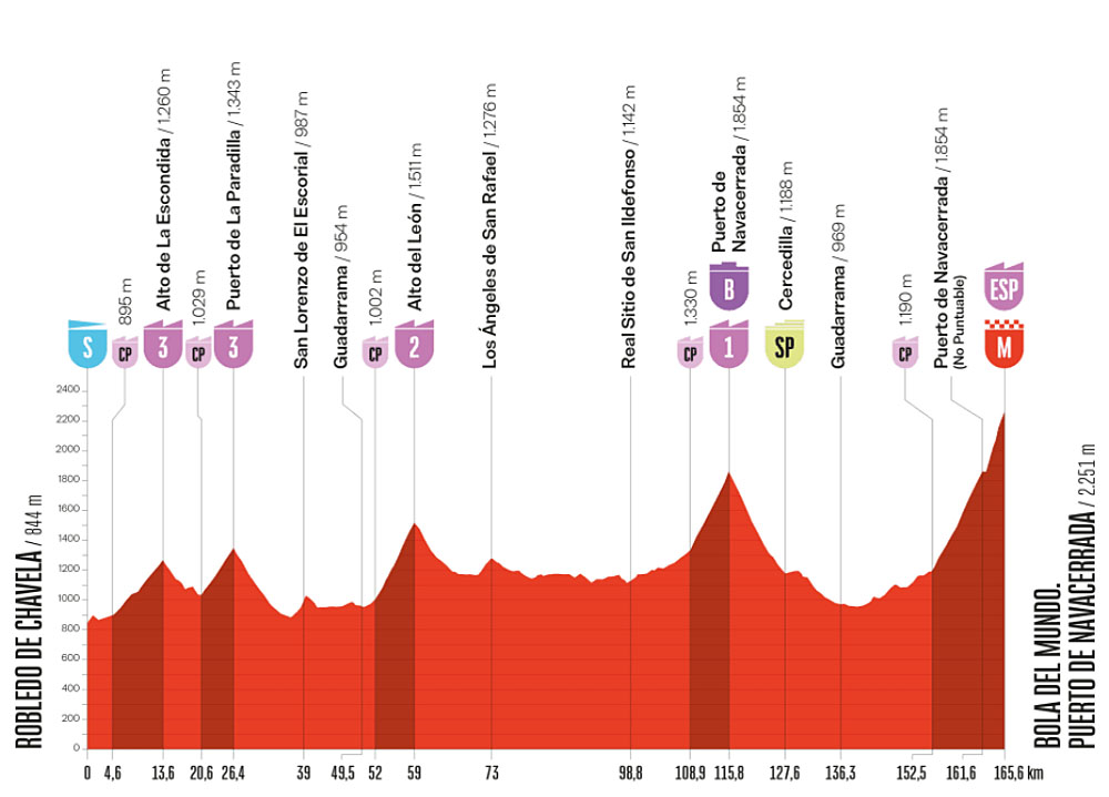 La 1ère ascension du Puerto de Navacerrada aura lieu sur le versant des sept virages. La 2ème précédent La Bola del Mundo, sur le versant madrilène,