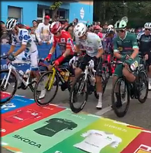 Une chute s'est produite dans le peloton à la toute fin du défilé, juste avant le départ réel. « Le coureur est debout », annonce Radio Vuelta.
