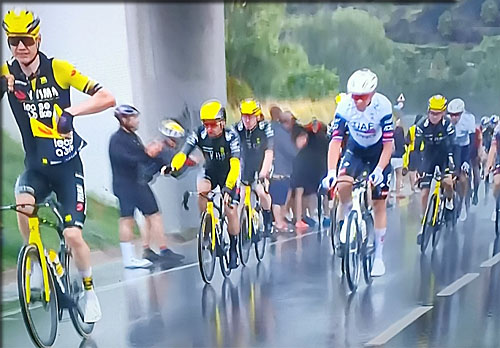 Vingegaard couvert dans le peloton . On est loin des épisodes caniculaires récents