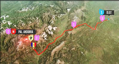 Le sprint intermédiaire aura lieu à Andorra la Vella, mais si les 10 ne sont pas rejoints les sprinters ne pourront pas se disputer de points, ce qui semble être le scénario dont on prend le chemin