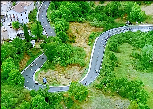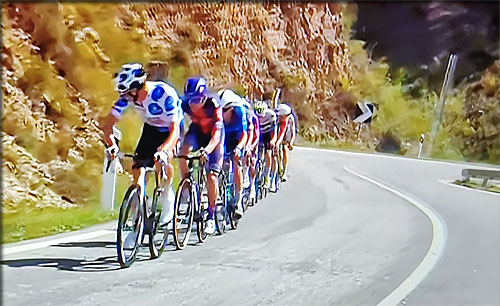 les coureurs de tête sont dans le faux plat encore descendant de la vallée. Ecart: 1'54"