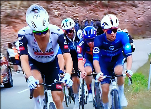2' 53" entre Ayuso et le peloton des favoris emmené par Soler pour Almeida ...Vingegaard dans la roue