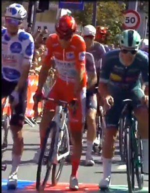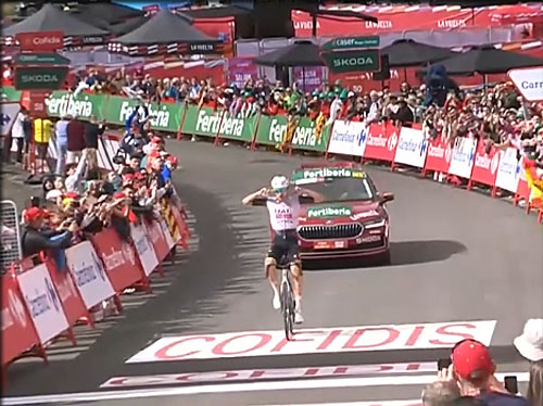 Juan AYUSO va gagner l'étape, Il a 1 mn d'avance sur le plus proche poursuivant, Frigo qui va arriver 2ème après avoir distancé Garcia Pierna