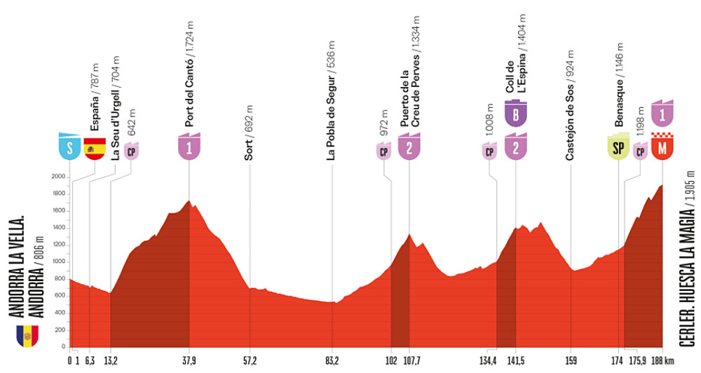 L'étape pyrénéenne du jour sortira de l'Andorre à SEU d'ORGELL pour ne plus quitter l'Espagne septentrionale et centrale durant tout le reste de la Vuelta 2025.