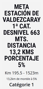 Une longue étape au jourd'hui parsemée de côtes et descentes incessantes ponctuée par l'ascension de Valdescaray à la station de ski
