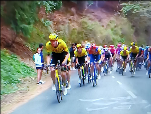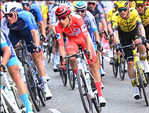 le maillot rouge une 4 ème journée consécutive en résistant aux coups de boutoir quasiment certains de tout ou partie des leaders au général, jetant des forces sans compter la veille d'une journée de repos ? c'est possible car on a vu que les Visma ne tiennent pas à devoir assumer le poids de la course si Vingegaard revenait leader au général.
