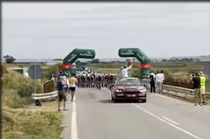 Les coureurs sont sur la ligne départ - Le départ est donné , ils défilent tranquillement dans Alfaro