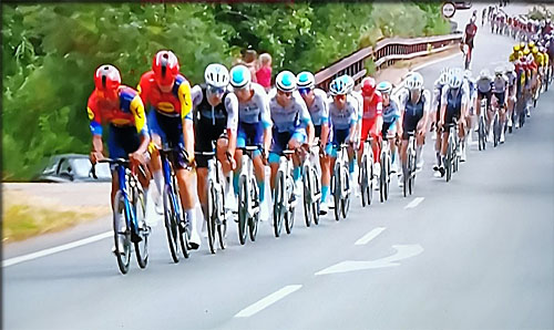 peloton relativement calme, groupé. Température idéale pour une course cycliste: 27°